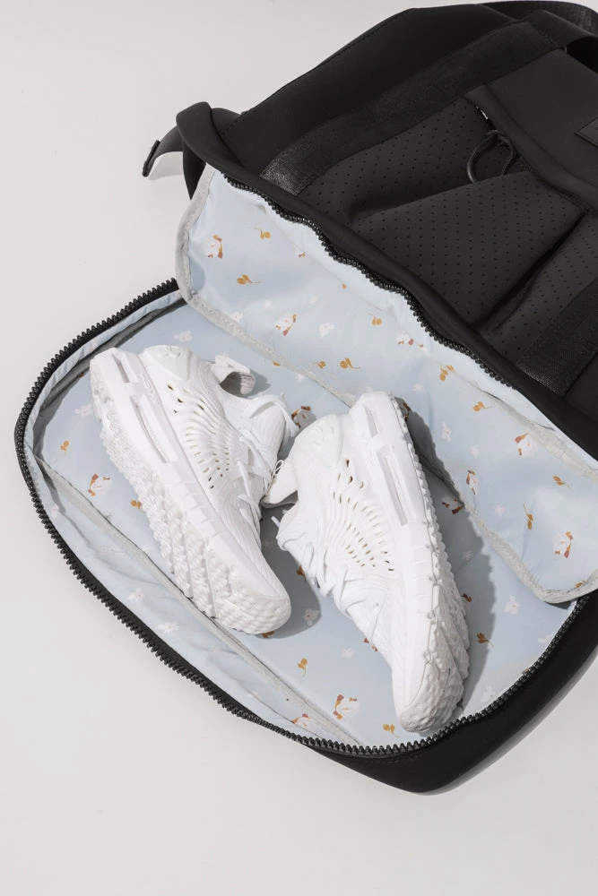 The Ella Duffle is thoughtfully designed to double as the ultimate gym bag and the perfect weekender, with a waterproof shoe compartment, laptop holder, water bottle holders, and multiple pockets all over. Ella truly enchants with her chic and sporty look.